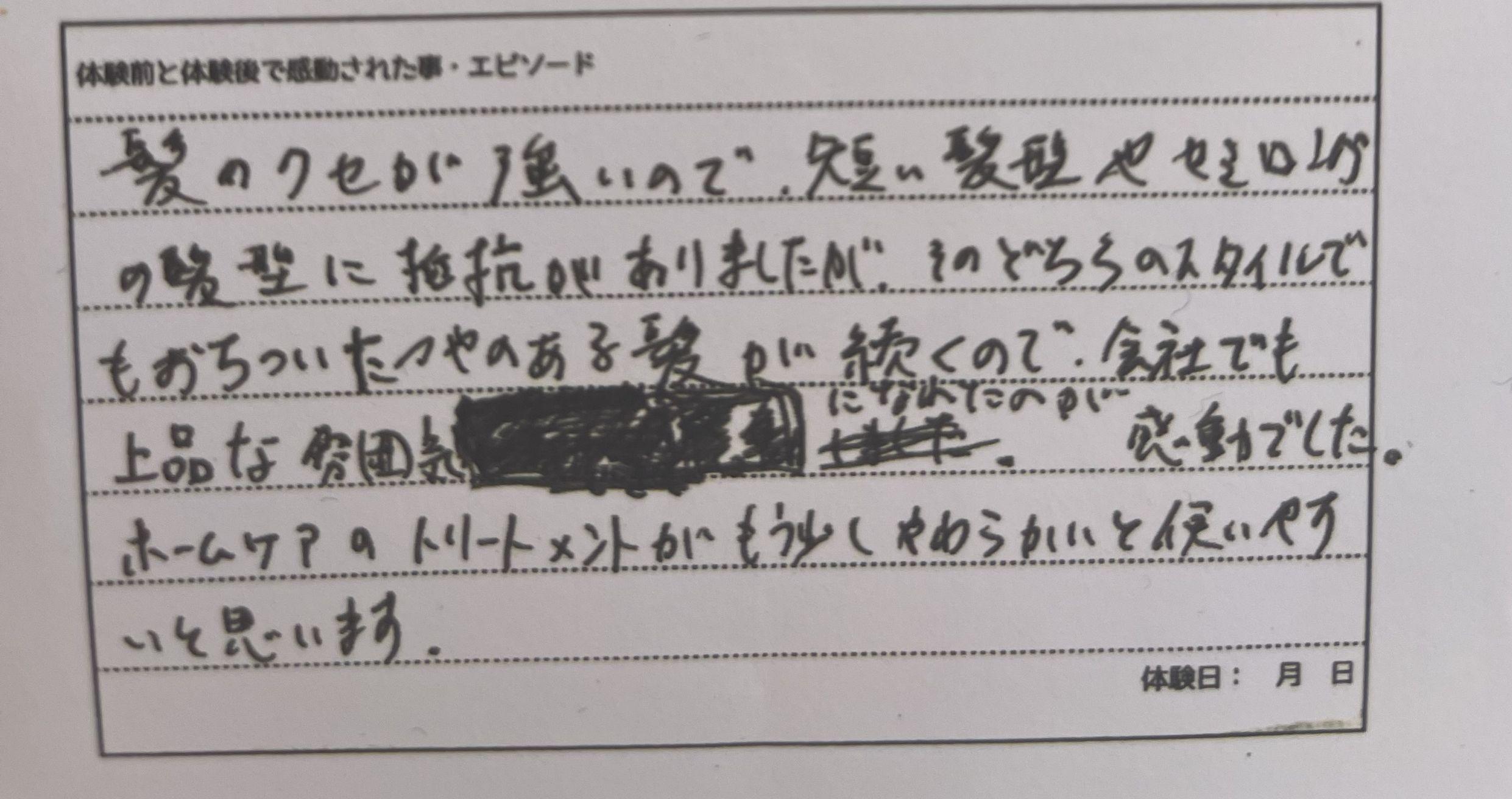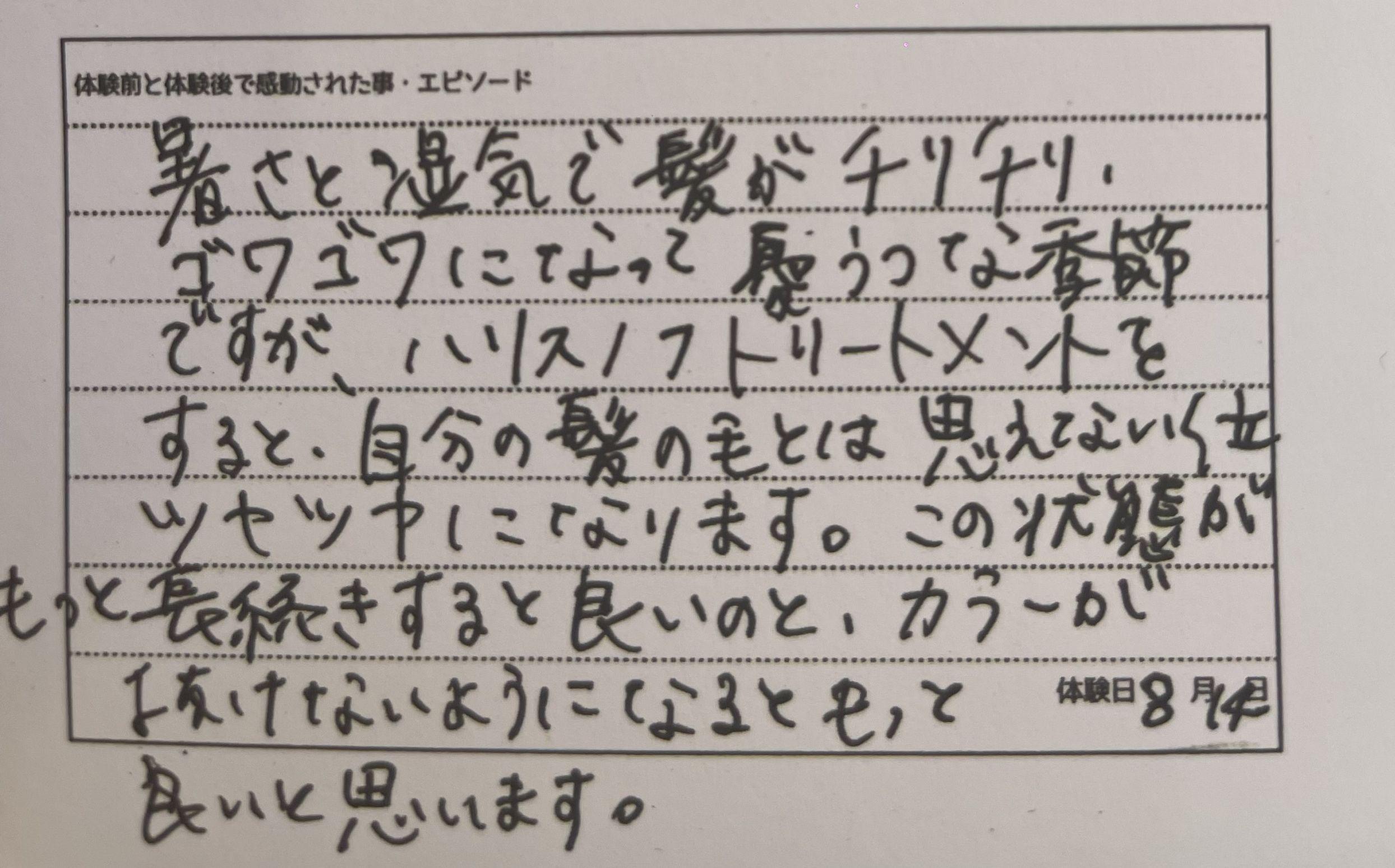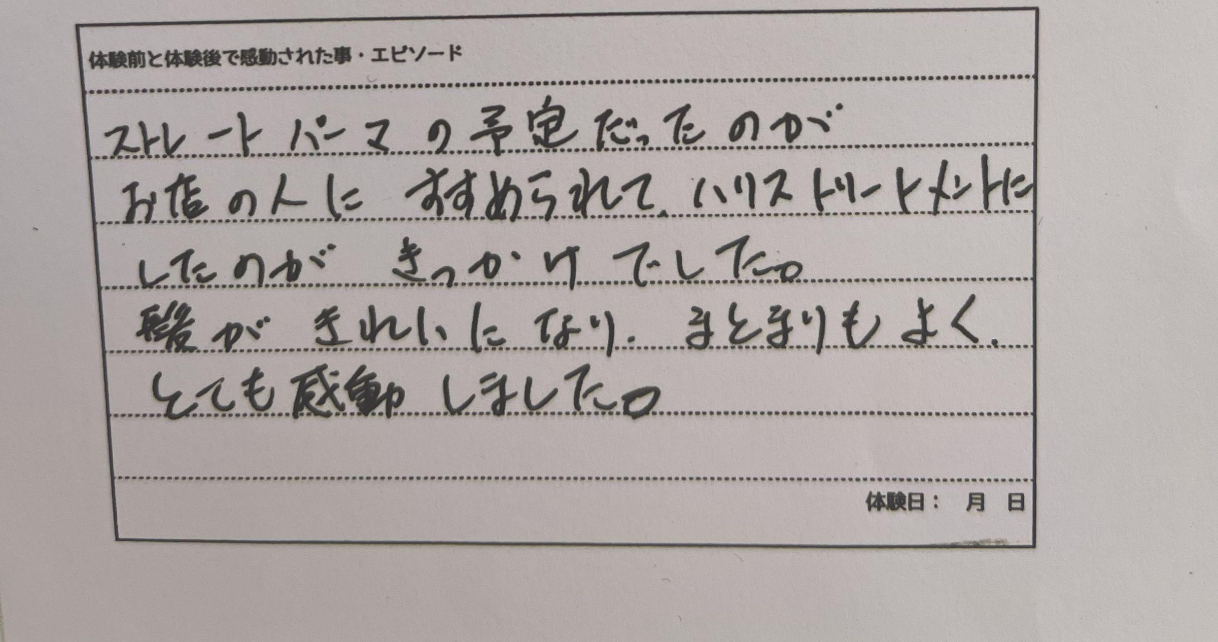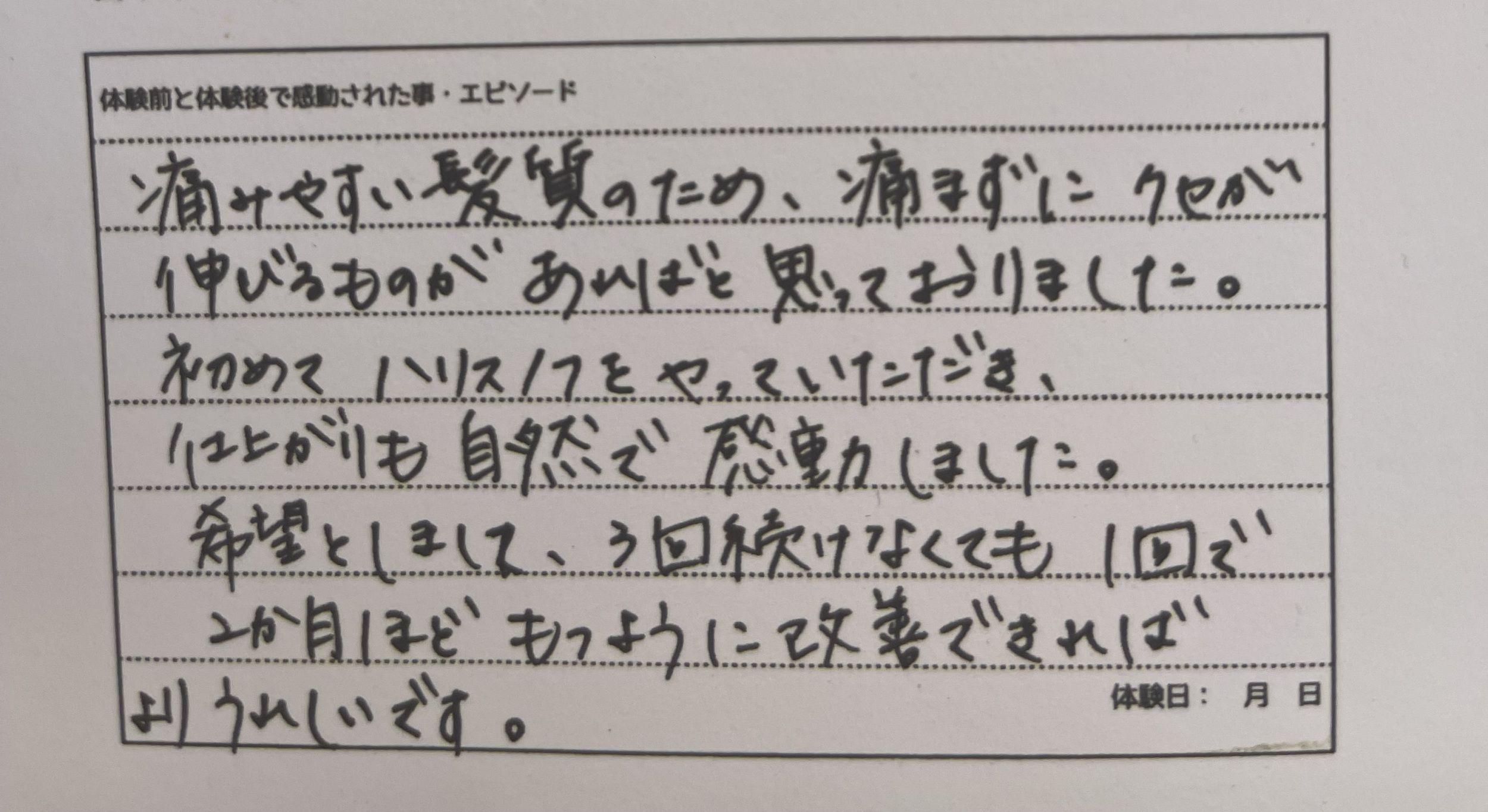 その結果ハリ、コシ、ツヤが出たというお客様のお声をいただきました